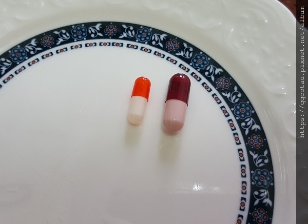 (右邊是汪喵的葉黃素膠囊比較大,左邊是我幫QQ的中藥另外做成的3號膠囊)