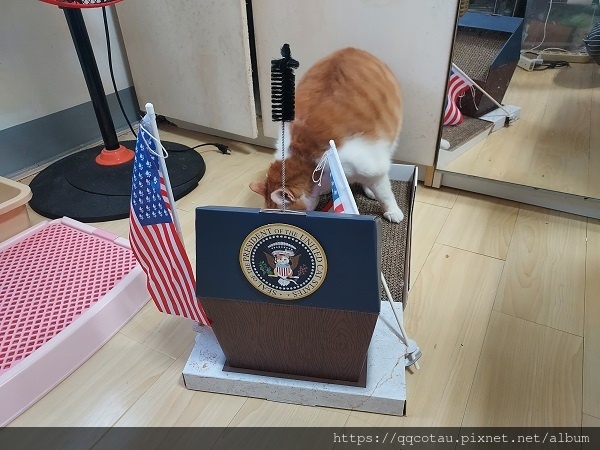 今天要介紹一款很可愛爆笑的貓抓板,美國貓總統演講台~