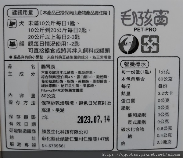 注意!部落格介紹保健品純綷分享,不推廣某個品牌或療效。我會盡量問到近期檢驗報告(但報告也有時效性),請購買之前再和廠商確認,並詢問獸醫是否適合毛孩狀況再買。
