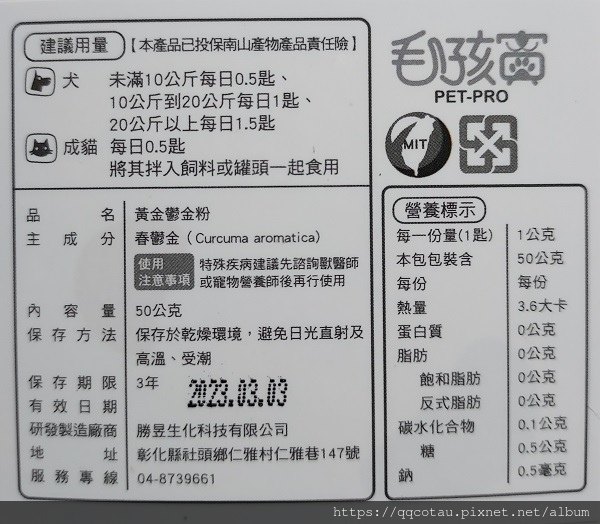因為Q媽很喜歡嚐試新產品,光是益生菌已經分享過好幾篇文章,只能說台灣有愈來愈多好的寵物保健品牌,大家可以多多支持國貨啊!當然每家產品的訴求不同,從平價到高價都有,還是要視自身的經濟狀況選擇,若毛孩還年輕,其實可以選擇CP值高且又優質的品牌就好了!畢竟很多毛孩家長幾乎是學生,今天要介紹的就是一款都是選用天然原料配方製造的:毛孩寶~腸胃康納豆益生菌,以及抗氧化的薑黃粉(黃金鬱金粉)。