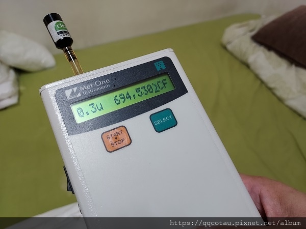 在來測試房間的空氣品質,一樣測到懸浮微粒有69萬多~天哪!原來我家空氣品質這麼不好。