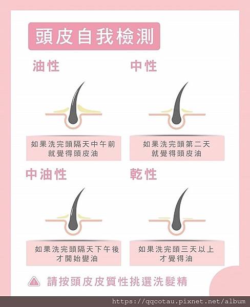 幫自己的頭皮簡單做個檢測,我現在算是中油性。洗完隔天下午就會油頭了!很多洗髮精會特別註明適合什麼頭皮或髮質,千萬不要亂買!但這家是適合所有頭皮性質和髮質喔!