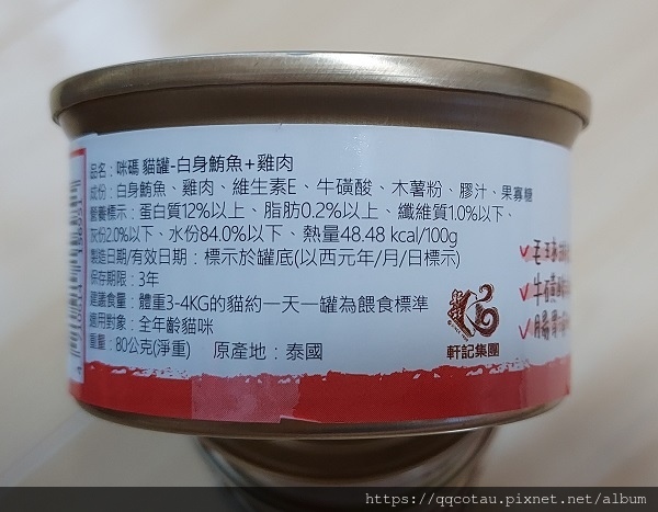 2.因為副食罐主要是偶爾給毛孩的點心,騙水用的,所以我就不計算乾物比了。畢竟不是當成主食罐每餐在餵食,家長只要注意成分來源是有經過合格認證的就好了。