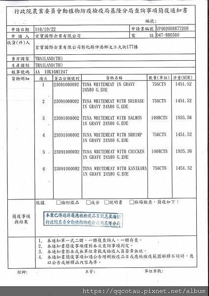 有國內進口檢疫證明(泰國當地工廠有做食安檢驗) |