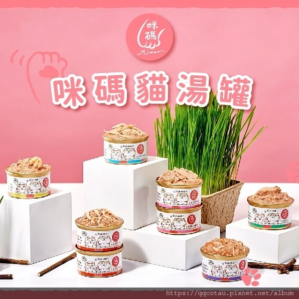 咪碼湯罐是由原本已經很有名的台灣在地品牌「寶貝餌子」出品的貓咪品牌副食罐喔!先買五種口味試吃看看:白身鮪魚+雞肉、白身鮪魚+鮭魚、白身鮪魚+蟹肉、白身鮪魚+鮮蝦、白身鮪魚+吻仔魚。