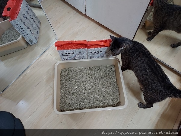 巧虎比較喜歡礦砂,所以每次試用新砂他都不肯,只喜歡用家裡的礦砂盆。