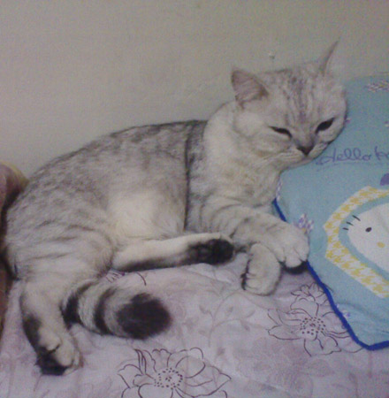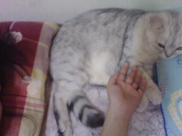 更過份的是!有時乾脆就把身體伸長直接睡在枕頭上了,可是我把枕頭拿到別處她又不要,硬是要睡我頭旁邊@@
